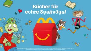 Unter dem Claim „Bücher für echte Spaßvögel – lustige Geschichten aus recyceltem Material“ bietet McDonald’s Deutschland vom 30. Oktober bis 3. Dezember neue Recycling-Bücher im Happy Meal an. Die humorvollen Geschichten sorgen für Lacher und gemeinsame Momente – vom Wissens- bis zum Witzebuch, zum Selbst- oder Vorlesen. Studien der Stiftung Lesen zeigen: Das Happy Meal regt viele Familien – auch solche, in denen bisher selten vorgelesen wurde – zum gemeinsamen Lesen an. So erhält Leseförderung ganz nebenbei mehr Aufmerksamkeit und wird spielerisch in den Familienalltag integriert.